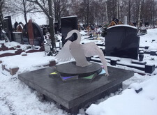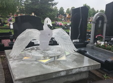 Очень сложная и интересная работа по созданию уникального мемориального комплекса. Он на столько уникальный и запоминающийся, что если на Троекуровском кладбище (богемное кладбище Москвы), где установлен этот комплекс, вы спросите у любого служащего где находится могила с лебедем, вам легко покажут дорогу.